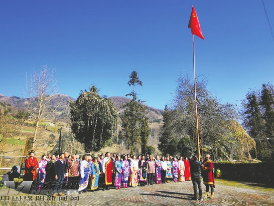1月1日,在北川桃龍藏族鄉(xiāng)鐵龍村民族團結廣場,藏、羌、漢、回等各族群眾身著民族服裝,舉行升國旗儀式。大家在新年的第一天,祝福偉大祖國更加繁榮昌盛,共話未來美好生活。