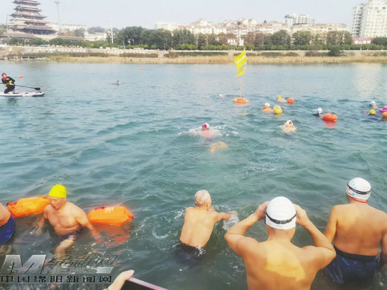 1月1日,我市300名冬泳健兒橫渡涪江,喜迎新年到來。冬泳健兒中,年齡最大的83歲,最小的9歲,健兒們在涪江中暢游的身姿為冬日綿陽添上了一道亮麗的風景。 (李哲熙 攝影報道)