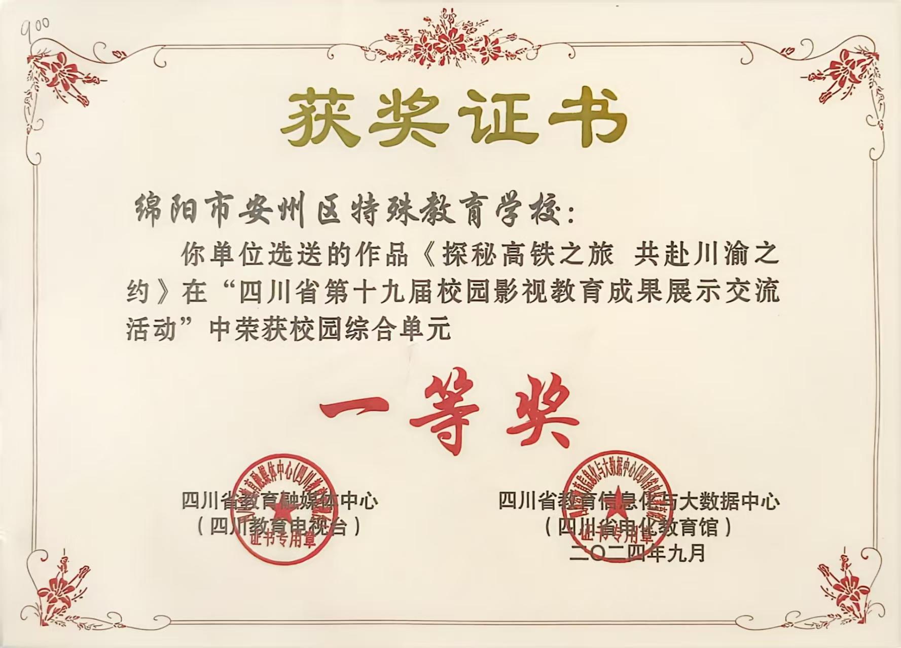 此次校園影視教育成果展示交流活動(dòng)由四川省電化教育館和四川教育電視臺(tái)聯(lián)合主辦。安州特校一共選送4個(gè)反映教育教學(xué)和社會(huì)實(shí)踐的作品參賽,其中《把未來(lái)點(diǎn)亮》榮獲校園綜合單元一等獎(jiǎng),《探秘高鐵之旅 共赴川渝之約》榮獲校園綜合單元一等獎(jiǎng),《妙趣六一 與你蟲(chóng)逢》榮獲校園綜合單元三等獎(jiǎng),《星星有“畫(huà)”說(shuō) 有愛(ài)不孤獨(dú)》榮獲校園短視頻單元三等獎(jiǎng)。