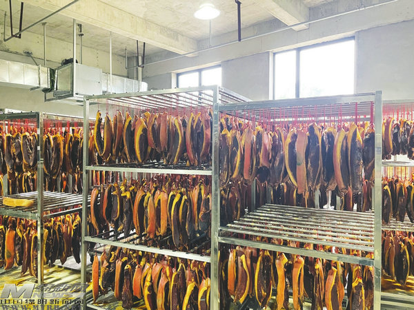 利用傳統(tǒng)方式加工臘肉,往往會受季節(jié)等因素制約,為了提高產(chǎn)能,北川羌妹子實業(yè)有限公司引進了智能生產(chǎn)線,讓客戶一年四季都能吃到正宗的北川臘味,在該公司智能生產(chǎn)車間里,“全副武裝”的工人們精準把控著每一道工序,將精選的土豬肉經(jīng)過精細加工,變成了色澤誘人、風味獨特的臘肉制品,這些產(chǎn)品不僅承載著北川的傳統(tǒng)美味,更融入了現(xiàn)代科技的精髓,滿足了廣大消費者多樣化需求。