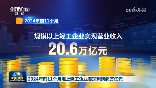 記者從中國(guó)輕工業(yè)聯(lián)合會(huì)獲悉,2024年前11個(gè)月,我國(guó)輕工行業(yè)生產(chǎn)平穩(wěn)增長(zhǎng),規(guī)模以上輕工企業(yè)實(shí)現(xiàn)利潤(rùn)超萬(wàn)億元。