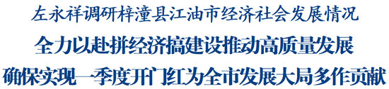調(diào)研中,左永祥聽(tīng)取了兩縣(市)貫徹落實(shí)中央和省委經(jīng)濟(jì)工作會(huì)議精神、市委八屆九次全會(huì)精神情況,以及今年工作打算等情況匯報(bào),對(duì)取得的工作成效給予肯定。他強(qiáng)調(diào),梓潼、江油發(fā)展基礎(chǔ)堅(jiān)實(shí)、勢(shì)頭良好,要繼續(xù)保持專注發(fā)展戰(zhàn)略定力,細(xì)化對(duì)接落實(shí)國(guó)省一攬子增量政策,以更加務(wù)實(shí)舉措鍛長(zhǎng)板揚(yáng)優(yōu)勢(shì)、補(bǔ)短板趕進(jìn)度,保持“開(kāi)局就發(fā)力、起步就沖刺”的勁頭,全力抓好一季度經(jīng)濟(jì)工作,為全市發(fā)展大局貢獻(xiàn)更多力量。要立足資源稟賦和產(chǎn)業(yè)基礎(chǔ),大力推進(jìn)新型工業(yè)化,把發(fā)展特色優(yōu)勢(shì)產(chǎn)業(yè)和戰(zhàn)略性新興產(chǎn)業(yè)作為主攻方向,加快推進(jìn)“智改數(shù)轉(zhuǎn)”步伐,因地制宜加快發(fā)展新質(zhì)生產(chǎn)力,推進(jìn)產(chǎn)業(yè)向高端化、智能化、綠色化發(fā)展。要堅(jiān)持以項(xiàng)目為中心組織經(jīng)濟(jì)工作,積極開(kāi)展精準(zhǔn)專業(yè)招商,努力引進(jìn)一批附加值高、帶動(dòng)力強(qiáng)、經(jīng)濟(jì)效益好的優(yōu)質(zhì)項(xiàng)目,加快塑造高質(zhì)量發(fā)展新動(dòng)能新優(yōu)勢(shì)。要以文旅助推消費(fèi)提質(zhì)升級(jí),著力打造獨(dú)具特色和標(biāo)識(shí)的文旅融合新產(chǎn)品、新服務(wù)、新業(yè)態(tài),搶抓春節(jié)假期等消費(fèi)節(jié)點(diǎn),加快研究推出重點(diǎn)領(lǐng)域促消費(fèi)刺激措施,著力營(yíng)造濃厚氛圍,持續(xù)釋放消費(fèi)活力。要加快推進(jìn)以縣城為重要載體的新型城鎮(zhèn)化,推動(dòng)城鄉(xiāng)公共資源均衡高效配置,推進(jìn)城鄉(xiāng)基礎(chǔ)設(shè)施一體化,不斷提升縣城綜合承載能力和服務(wù)功能,增強(qiáng)中心鎮(zhèn)輻射帶動(dòng)力。要更好統(tǒng)籌發(fā)展和安全,抓實(shí)抓好安全生產(chǎn)、森林草原防滅火和防災(zāi)減災(zāi)工作,強(qiáng)化民生服務(wù)保障,有效化解各類矛盾糾紛和風(fēng)險(xiǎn)隱患,確保社會(huì)大局和諧穩(wěn)定。