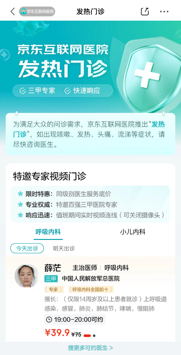 面對流感就醫(yī)壓力,京東互聯(lián)網(wǎng)醫(yī)院承擔起重要的分流作用。今年,京東互聯(lián)網(wǎng)醫(yī)院專門開設(shè)了發(fā)熱門診與“流感關(guān)愛專區(qū)”,不僅為兒童、老人等重點人群提供發(fā)熱門診服務,還能通過線上開檢驗單,幫助患者實現(xiàn)“在線問診、上門檢驗、醫(yī)生診斷、送藥到家”的一站式就醫(yī)體驗,大大降低線下就醫(yī)交叉感染的風險。用戶只需在京東APP上搜索“問醫(yī)生”,或者搜索“發(fā)熱門診”,就可以隨時隨地在線上找到合適的醫(yī)生。數(shù)據(jù)顯示,進入1月以來,京東互聯(lián)網(wǎng)醫(yī)院呼吸道疾病相關(guān)問診量環(huán)比上周提升60%。
