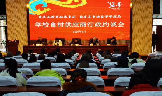 2025年1月2日,鹽亭縣教育和體育局、鹽亭縣市場監(jiān)督管理局在縣教師進(jìn)修校學(xué)術(shù)報(bào)告廳聯(lián)合召開2024年秋學(xué)校食堂食材供應(yīng)商行政約談會(huì)??h教體局副局長陶建軍、縣紀(jì)委監(jiān)委駐教體局紀(jì)檢監(jiān)察組組長張?jiān)葡?、安后股股長楊飛,縣市場監(jiān)管局餐飲股股長鐘莉、生產(chǎn)流通股股長楊雪梅參加會(huì)議。