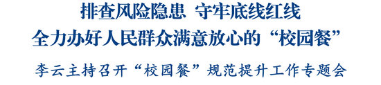 李云指出,管好“校園餐”是落實(shí)以人民為中心,辦好人民滿意教育的必然要求,也是回應(yīng)廣大群眾關(guān)切的民生需求。各地各有關(guān)部門要堅(jiān)決扛起政治責(zé)任,不折不扣落實(shí)黨中央、國(guó)務(wù)院和省委、省政府各項(xiàng)政策措施,緊盯“校園餐”食材采購(gòu)、財(cái)務(wù)管理、日常監(jiān)管等關(guān)鍵環(huán)節(jié),持續(xù)抓好問(wèn)題整改整治,真正把“校園餐”辦成“良心餐”。要全力保障食品安全,加強(qiáng)原料采購(gòu)到供餐全過(guò)程控制管理,嚴(yán)格規(guī)范執(zhí)行陪餐制度,強(qiáng)化對(duì)食堂從業(yè)人員的培訓(xùn)教育,積極邀請(qǐng)“兩代表一委員”參與學(xué)校食堂日常監(jiān)管,主動(dòng)接受家長(zhǎng)群眾監(jiān)督,常態(tài)化開(kāi)展執(zhí)法檢查,守護(hù)好學(xué)生“舌尖上的安全”。要加大財(cái)政投入力度,扎實(shí)做好食堂標(biāo)準(zhǔn)化建設(shè)、改造提升,強(qiáng)化營(yíng)養(yǎng)改善計(jì)劃經(jīng)費(fèi)保障,不斷提升學(xué)生就餐環(huán)境和質(zhì)量。