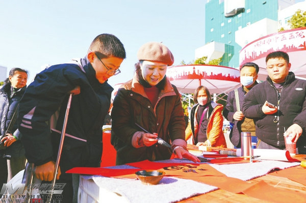 在中醫(yī)非遺項(xiàng)目特色體驗(yàn)區(qū),綿陽(yáng)市中醫(yī)醫(yī)院的醫(yī)生現(xiàn)場(chǎng)問診,市民排著長(zhǎng)隊(duì)沉浸式體驗(yàn)中醫(yī)傳統(tǒng)特色文化,爭(zhēng)相選購(gòu)特色中醫(yī)藥產(chǎn)品、香囊等;在漢服體驗(yàn)區(qū),精美的衣飾,配套的發(fā)簪、絨花、耳墜等飾品,吸引了很多愛好者一邊參觀,一邊沉浸式體驗(yàn)傳統(tǒng)服飾之美;在書法展區(qū),專業(yè)老師揮毫潑墨,一個(gè)個(gè)寓意祥和的“福”字,一副副充滿喜氣的春聯(lián)躍然紙上;在舞臺(tái)區(qū)的城市路演主題活動(dòng)中,飛花令、全民K歌輪番上演,福袋、綿陽(yáng)文創(chuàng)等各式禮品發(fā)不停……各式各樣的互動(dòng)環(huán)節(jié)讓市民和游客在逛大集、購(gòu)好品的同時(shí),體驗(yàn)到豐富多彩的文化盛宴。