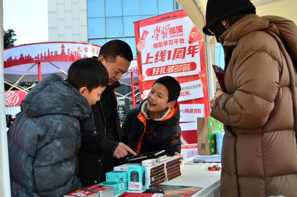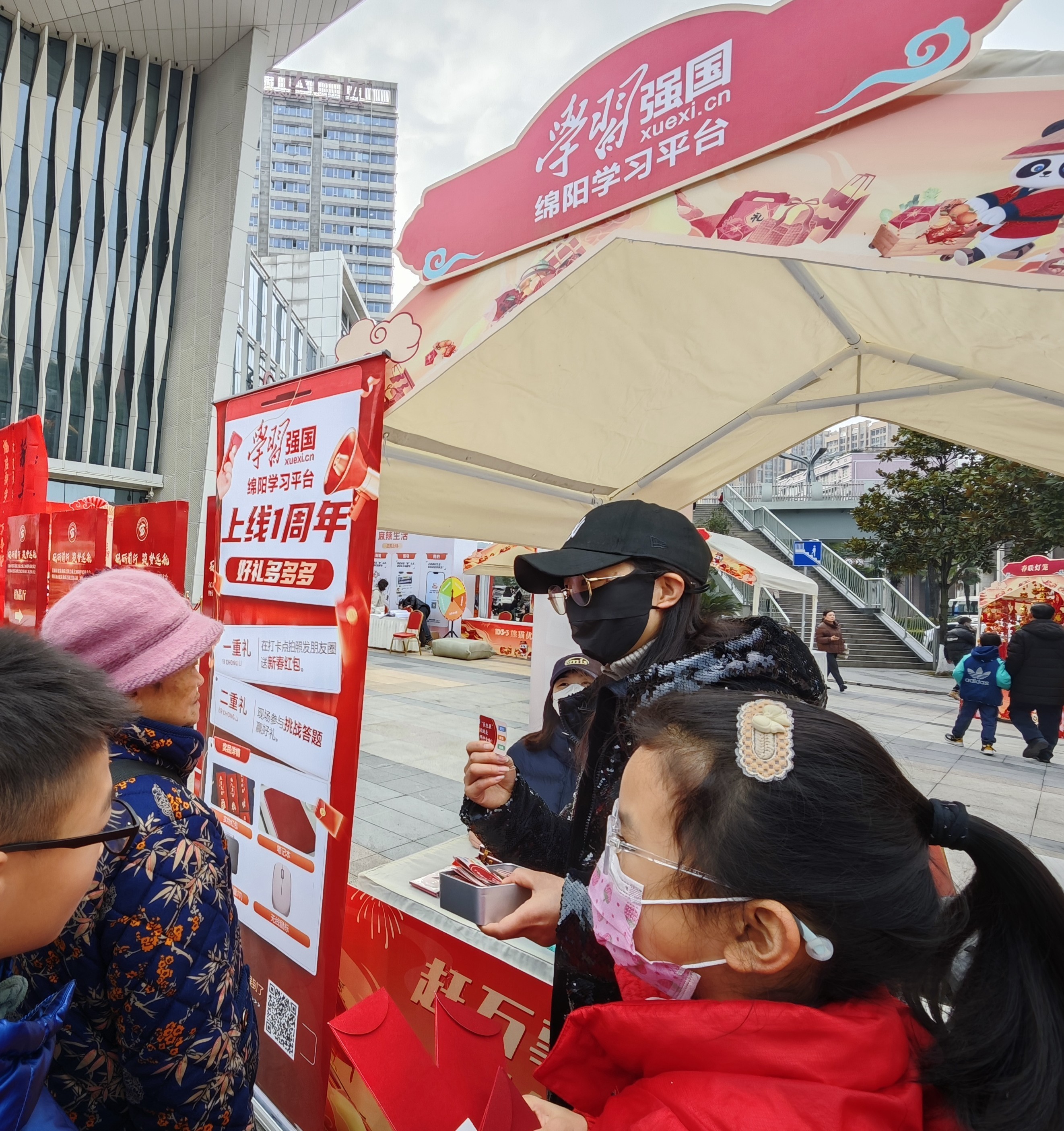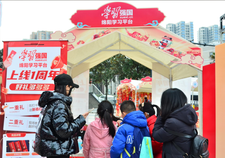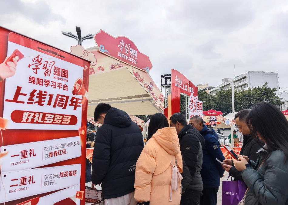 1月10日,由中共綿陽(yáng)市委宣傳部、綿陽(yáng)市文化廣播電視和旅游局主辦的家門口的“文化三推”——“綿陽(yáng)有禮·熊貓優(yōu)選”系列活動(dòng)在涪城萬達(dá)廣場(chǎng)熱鬧開啟。時(shí)值“學(xué)習(xí)強(qiáng)國(guó)”綿陽(yáng)學(xué)習(xí)平臺(tái)上線一周年,綿陽(yáng)學(xué)習(xí)平臺(tái)帶著豐厚的“周年禮”趕文化大集,現(xiàn)場(chǎng)尋找“最強(qiáng)大腦”。市民現(xiàn)場(chǎng)在“學(xué)習(xí)強(qiáng)國(guó)”客戶端挑戰(zhàn)答題,贏取移動(dòng)硬盤、無線鼠標(biāo)、筆記本、新春紅包等豐厚獎(jiǎng)品,好學(xué)、樂學(xué)氛圍濃厚。