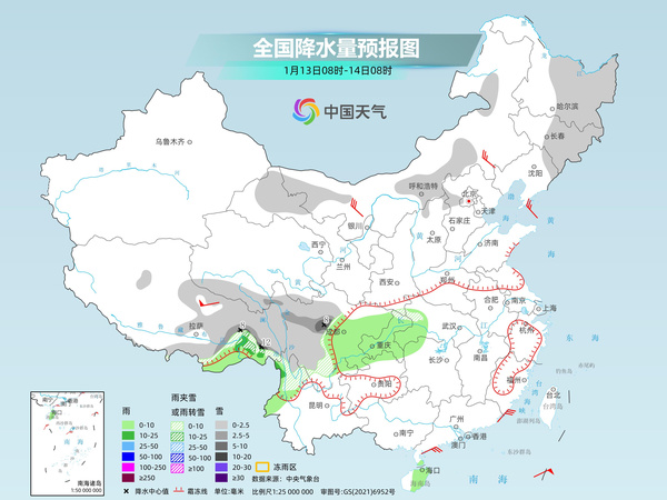 今明兩天(1月13日至14日),西南地區(qū)雨雪天氣將明顯增多,并逐漸向東擴(kuò)展,后天起全國大部又將回歸晴朗干燥的天氣格局。同時(shí),新一股較強(qiáng)冷空氣上線,中東部多地將迎來明顯降溫,部分地區(qū)降溫幅度可達(dá)8℃以上。