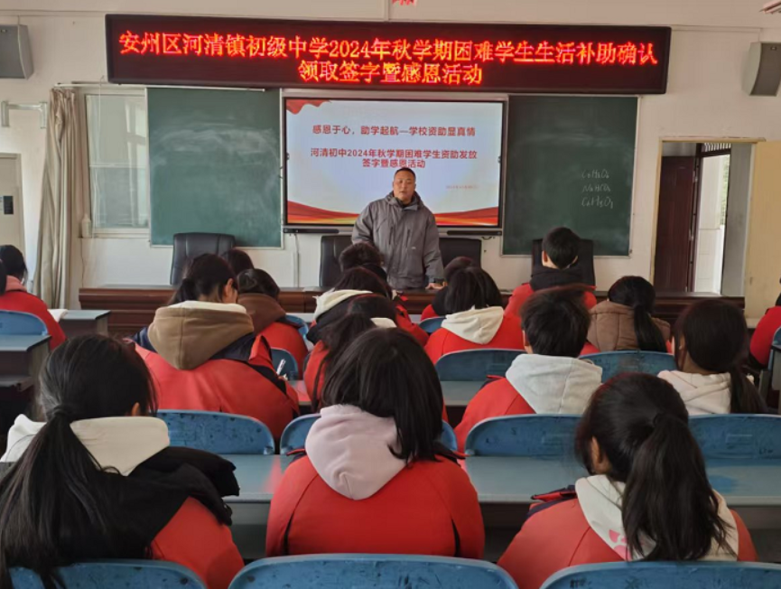 近日,安州區(qū)河清鎮(zhèn)初級(jí)中學(xué)開展了以“感恩于心,助學(xué)起航”為主題的2024年秋學(xué)期困難學(xué)生資助發(fā)放簽字暨感恩活動(dòng),本次活動(dòng)旨在培養(yǎng)青少年形成良好品德和健全人格,讓學(xué)生深刻認(rèn)識(shí)到自己的成長和成功背后,有許多人為之付出了努力和關(guān)懷。