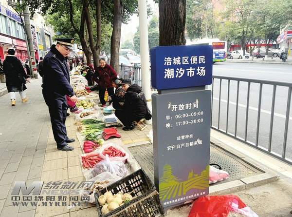這是涪城區(qū)為平衡市容市貌管理和便利群眾生活,實施的城市文明和市井生活“雙向奔赴”。經(jīng)調(diào)研并征求居民意見,在一環(huán)路南段干休所外設(shè)立了便民“潮汐市場”,市場內(nèi)實行劃線定點管理,各攤位長度1米,每名攤販限用一個攤位,一攤一筐,經(jīng)營時間為6時至9時、17時至20時,農(nóng)戶也可以在這里銷售自產(chǎn)的瓜果蔬菜或其他農(nóng)副產(chǎn)品。