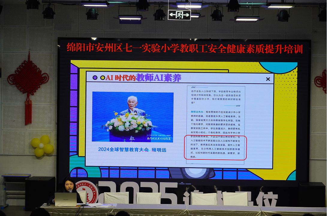 2025 年 1 月 10 日,安州區(qū)“七一”實(shí)驗(yàn)小學(xué)在學(xué)術(shù)廳開(kāi)展了以“期末教師素養(yǎng)提升培訓(xùn),助力 AI 教育新征程”為主題的2024年秋教師素養(yǎng)提升培訓(xùn)活動(dòng),全校教師180余名人教師參與,共赴這場(chǎng)知識(shí)與技能的學(xué)習(xí)盛宴。