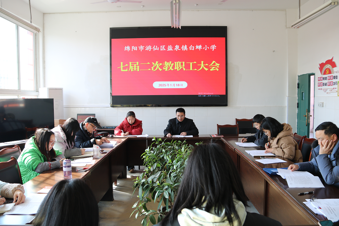 2025年1月18日,游仙區(qū)鹽泉鎮(zhèn)白蟬小學召開了以“潛心育人齊聚力,篤行不怠啟新程”為主題的第七屆工會委員會第二次教職工大會。本次大會旨在凝聚全體教職工的智慧與力量,保障各方面工作有序開展,推動學校提質(zhì)增效,助力學校持續(xù)高質(zhì)量發(fā)展。