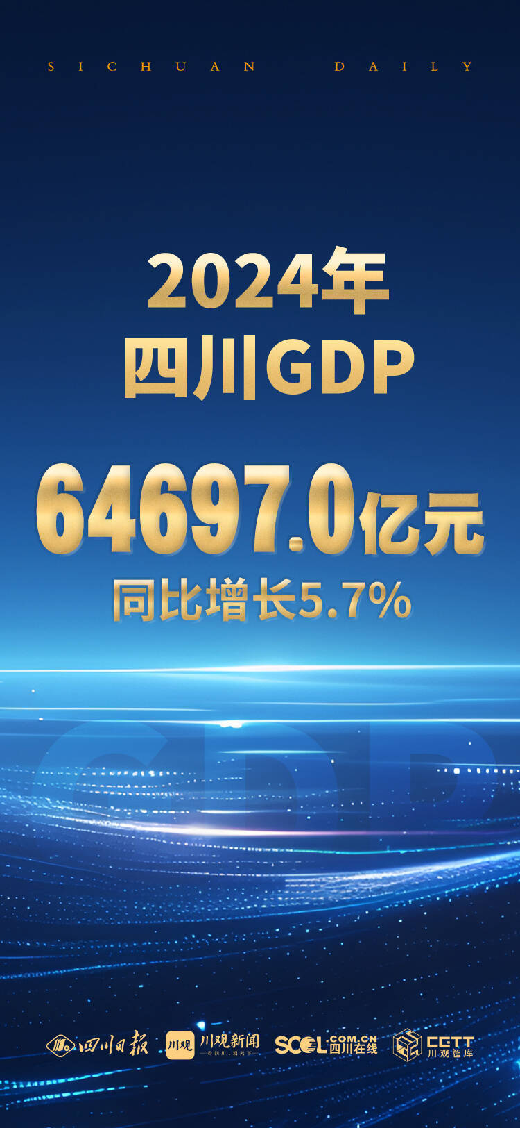 1月21日,四川省統(tǒng)計(jì)局發(fā)布2024年四川經(jīng)濟(jì)數(shù)據(jù)。根據(jù)地區(qū)生產(chǎn)總值統(tǒng)一核算結(jié)果,2024年四川實(shí)現(xiàn)地區(qū)生產(chǎn)總值64697.0億元,同比增長5.7%。