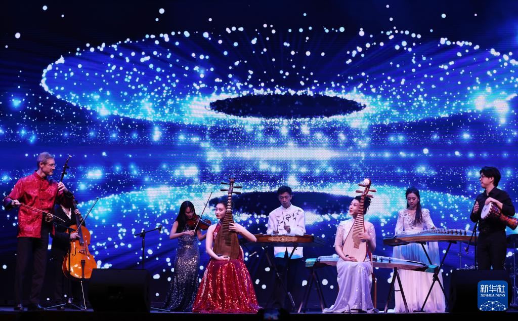 1月20日,星海民樂團的演員和法國音樂家在巴黎舉行的“金蛇獻瑞”巴黎春節(jié)聯歡晚會上演奏中西室內樂。