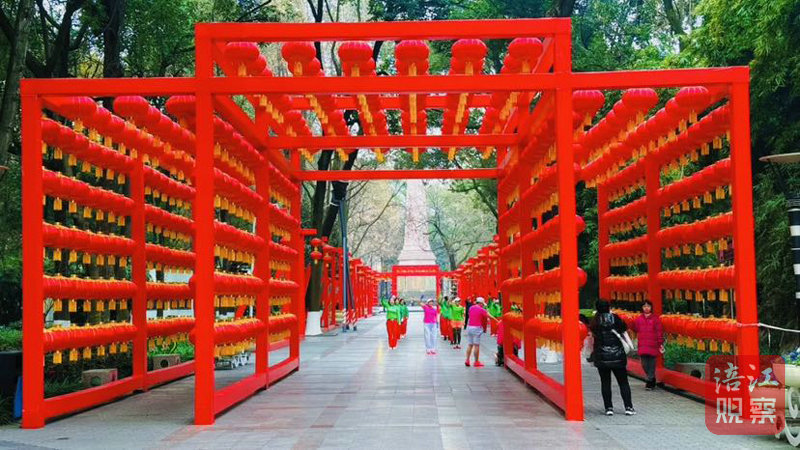 人民公園管理處以“喜迎蛇年·年味公園”為主題,在中央干道打造了100米長的“春木青蛇年”燈籠墻,紅彤彤的燈籠寓意春天的生機與蛇的靈動。
