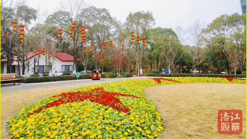 6000個大紅燈籠高高掛起,把整個公園裝點得紅紅火火。全園還擺放報春花、三色堇等鮮花50000盆,花箱188個,精心制作花境16處,與紅梅、燈籠相互映襯,為冬日公園增添一抹絢麗的色彩。