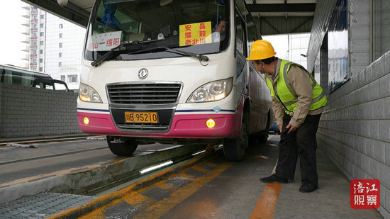 1月21日早上9點(diǎn),綿陽市汽車客運(yùn)總站廣場外車水馬龍,候車大廳人頭攢動。與前方窗口的熱鬧不同,客運(yùn)站后方的汽車安全例檢相對安靜。從每天早上8點(diǎn)半開始,每一輛進(jìn)站運(yùn)客的大巴車在“上崗”前都要接受嚴(yán)格“體檢”。