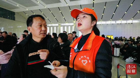 穿過馬路,對面就是綿陽火車站。廣場上人來車往,候車大廳熙熙攘攘,身穿紅馬甲、頭戴小紅帽的志愿者陳丁綺穿梭在旅客中,為旅客提供問詢向?qū)?、行李幫提、疏?dǎo)分流……春運(yùn)期間,這是她每天的工作日常。