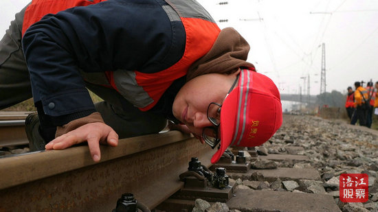 “看!看線路的高低,一定要保證這個(gè)鋼軌的平順,不能出現(xiàn)坑坑洼洼。”曾科趴在鐵軌上,憑借10年的從業(yè)經(jīng)驗(yàn),用雙眼“掃描”著鋼軌。