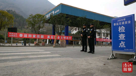 沿著平平路往前,米明和同事找了一個(gè)醒目的位置,將“行政村道路交通安全宣傳欄”貼上墻。隨后,又趕往林家壩交通安全執(zhí)勤執(zhí)法服務(wù)站,作為平武的主要交通路線,這里每天來往的車流量較大。今年春運(yùn)開始后,該服務(wù)站每天有幾千輛車進(jìn)出,春節(jié)期間,米明和同事們要輪流值守,保障這條通往平武的第一道關(guān)口暢通無阻。