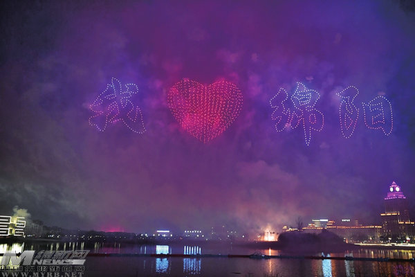 無(wú)人機(jī)組成“我愛綿陽(yáng)”圖案