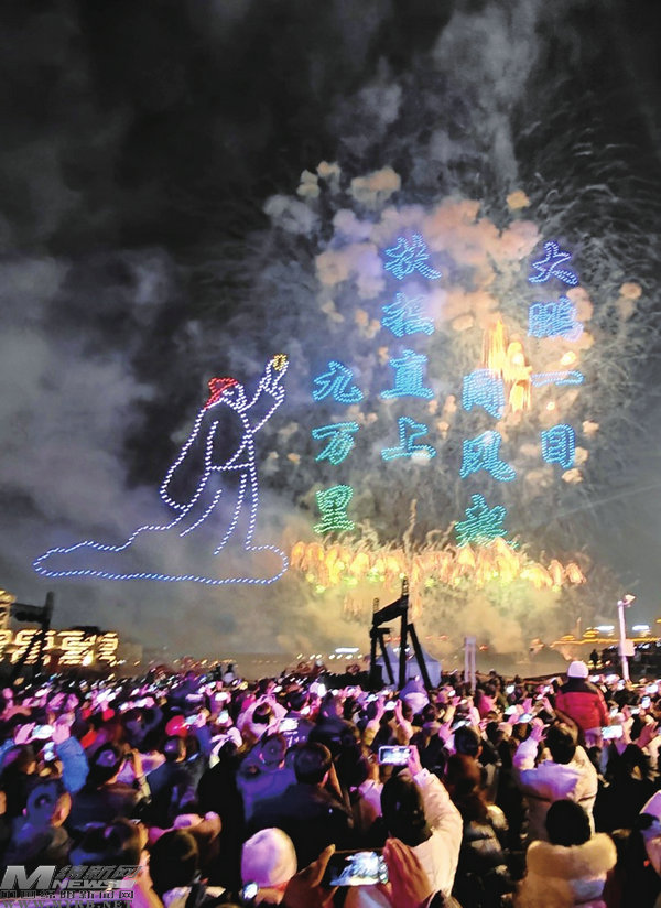 一張張笑臉上寫滿了幸福和喜悅。大家紛紛舉起手機(jī)、相機(jī)記錄美麗時(shí)刻,在五彩斑斕的焰火中憧憬新年的到來(lái)。