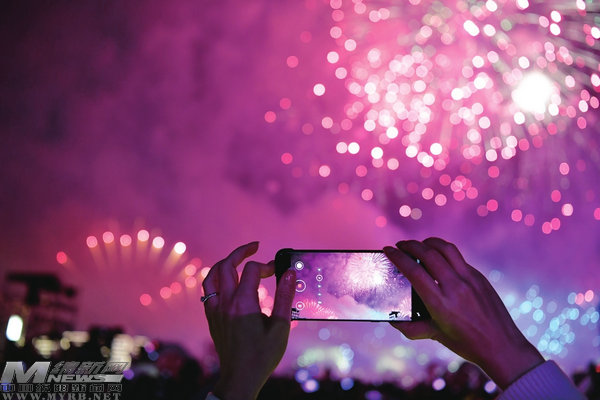 游客用手機(jī)拍下煙花秀璀璨瞬間