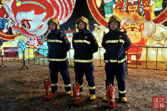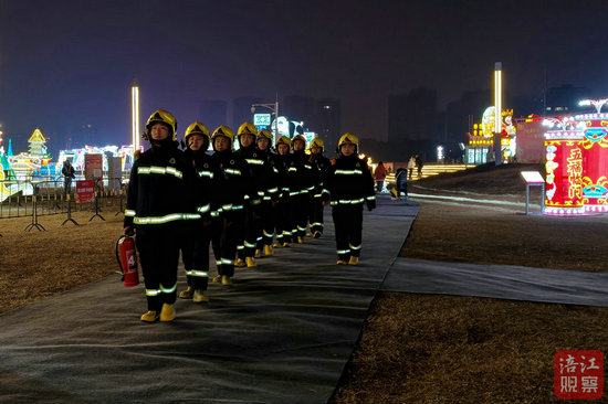 走進燈會現(xiàn)場,身著滅火戰(zhàn)斗服、手持消防器材的消防員,正在進行著流動巡邏和駐守監(jiān)護,而身著水域救援服的消防員,更是時刻保持高度警惕,隨時準備應對可能出現(xiàn)的突發(fā)情況。