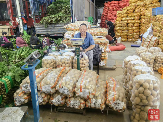 高水農(nóng)副產(chǎn)品批發(fā)市場商戶李老板正忙著收款,他告訴記者,為應(yīng)對雙節(jié)需求,1個月前便提前備貨,確保各類蔬菜新鮮且不脫銷斷供。“最近所有菜都比較好賣,銷售量和平時相比,提升了50%,采購商來我們這里采購的也比較多,銷售量比平時也有所增長。”李老板說。
