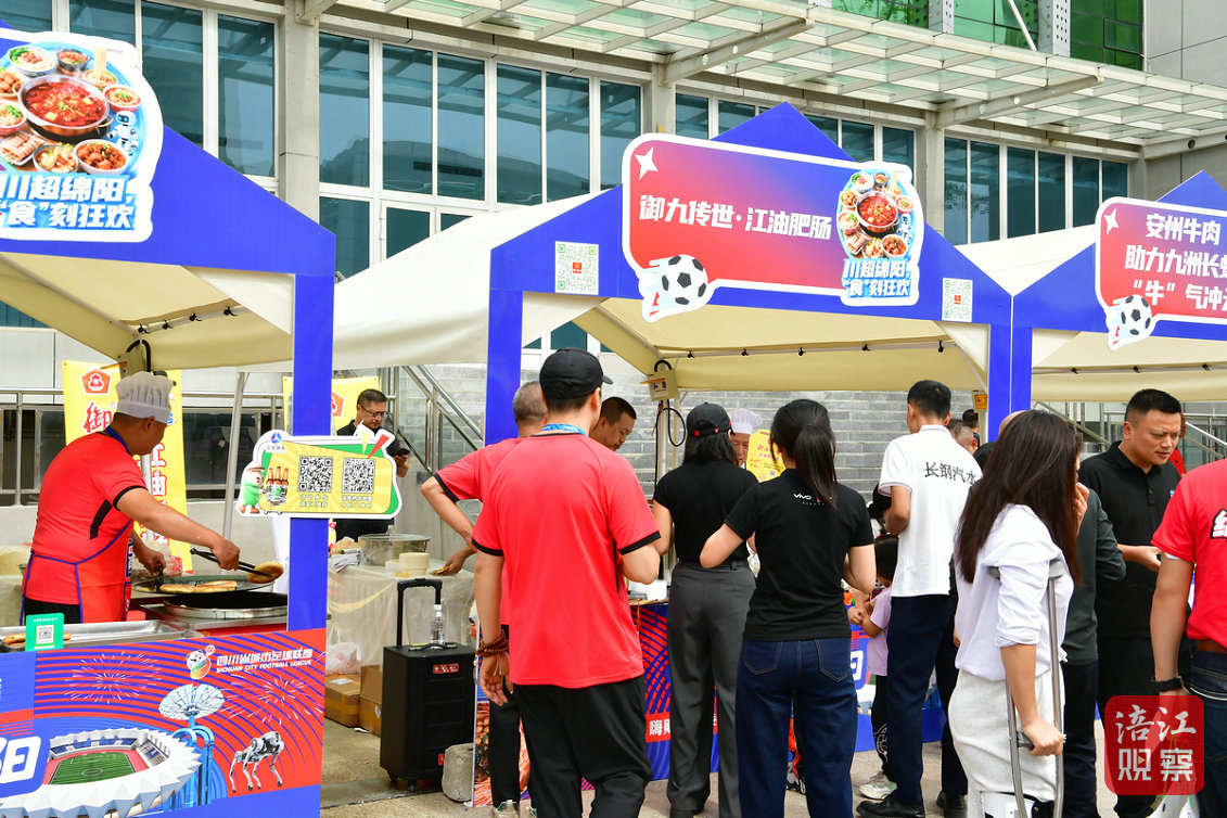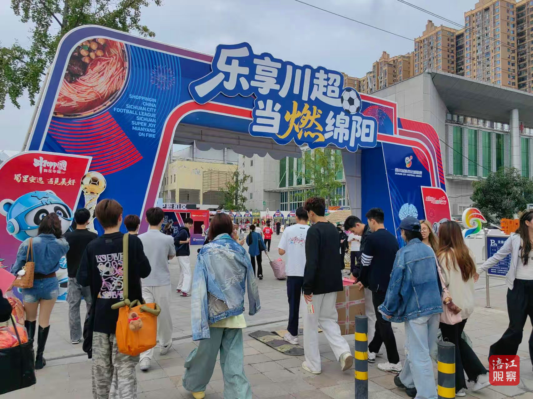 川超賽事的熱度,成為拉動(dòng)綿陽消費(fèi)的“催化劑”。在三臺(tái)縣體育場(chǎng)外,依托川超賽事打造的“樂享川超”專屬消費(fèi)市集,設(shè)置助威產(chǎn)品、美食品鑒、互動(dòng)體驗(yàn)、綿陽好物四大功能區(qū),65個(gè)展位涵蓋農(nóng)特、非遺、家電、鞋服等品類,實(shí)現(xiàn)“觀賽+消費(fèi)”無縫銜接。同時(shí),準(zhǔn)備了花式足球表演、NPC互動(dòng)及T臺(tái)秀等消費(fèi)活動(dòng),球迷憑票根可在餐飲、住宿、購物等多領(lǐng)域享受專屬優(yōu)惠。