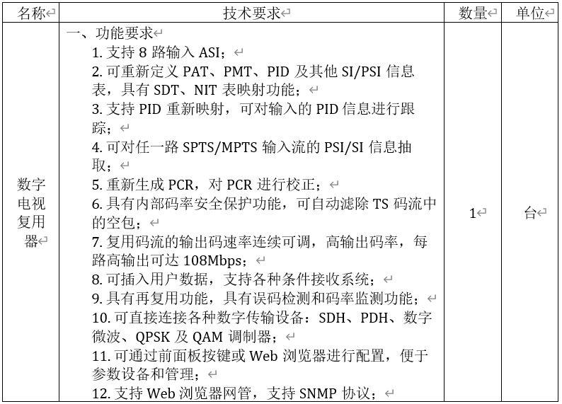 綿陽市新聞傳媒中心擬以詢價的方式采購1臺用于電視節(jié)目播出傳輸?shù)臄?shù)字電視信號復用器。誠邀符合《中華人民共和國政府采購法》第二十二條資格條件的供應商前來參與詢價。