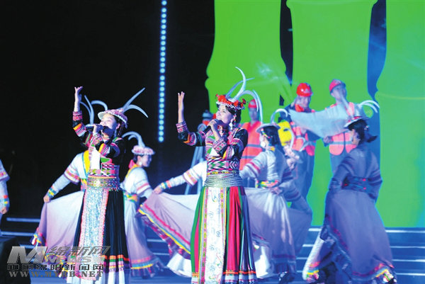 演員載歌載舞,唱出對(duì)家鄉(xiāng)的愛。