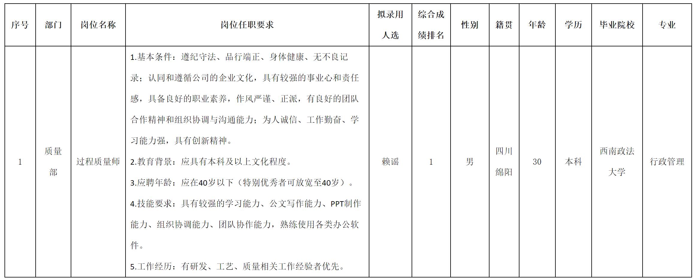 根據(jù)四川長(zhǎng)虹空調(diào)有限公司發(fā)布的招聘公告及招聘相關(guān)規(guī)定,經(jīng)面試,擬錄用賴謠到長(zhǎng)虹空調(diào)工作,現(xiàn)予以公示,具體情況如下: