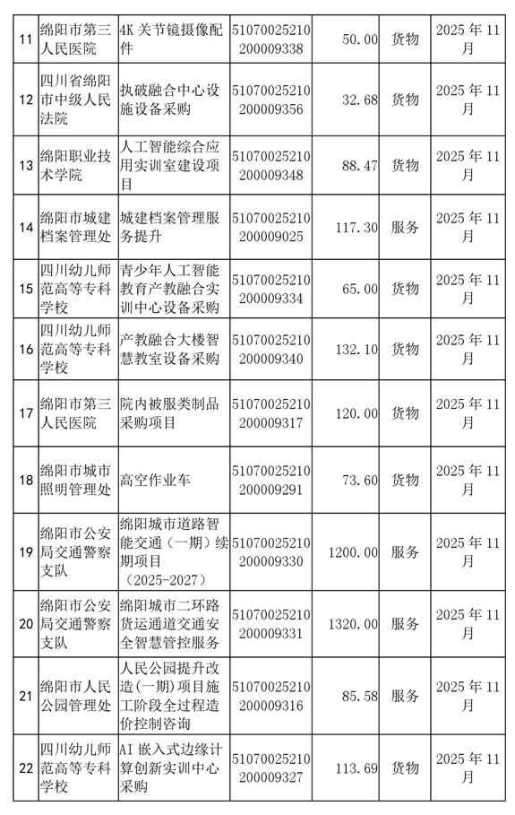 62個政府采購項(xiàng)目的“機(jī)會清單”出爐?。?025年第十二批)綿陽市市本級政府采購項(xiàng)目信息動態(tài)(2025年第十二波)