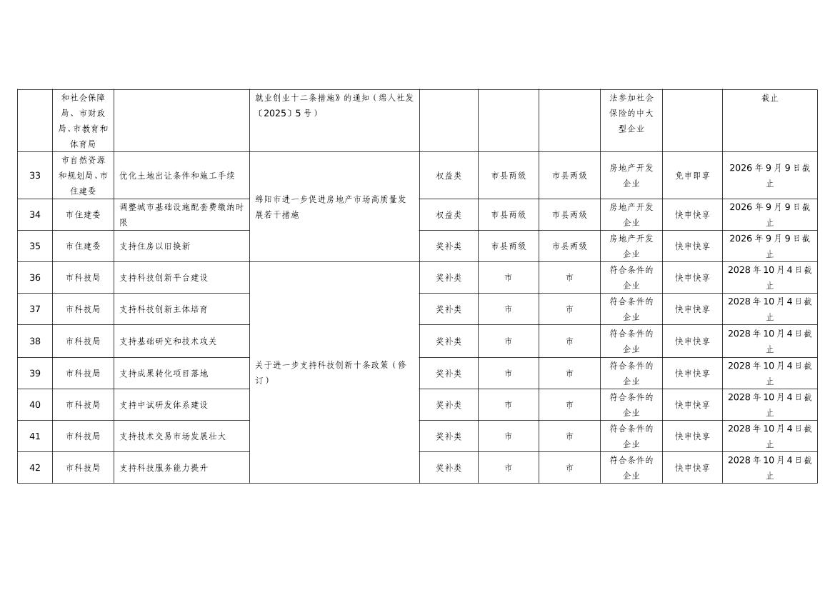 2025年綿陽市級惠企政策事項清單(第二批)