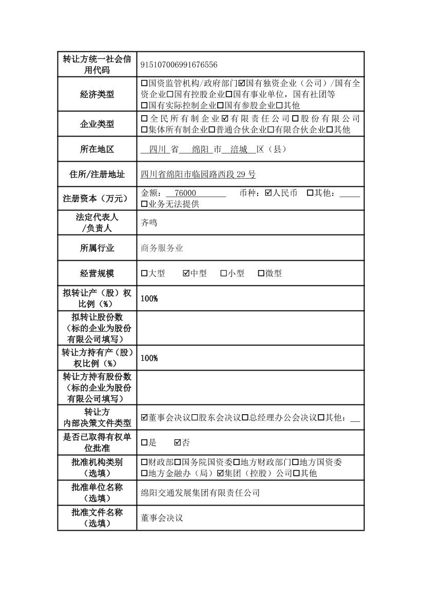 平武縣蜀漢旅游開發(fā)有限公司100%股權(quán)轉(zhuǎn)讓信息預(yù)披露