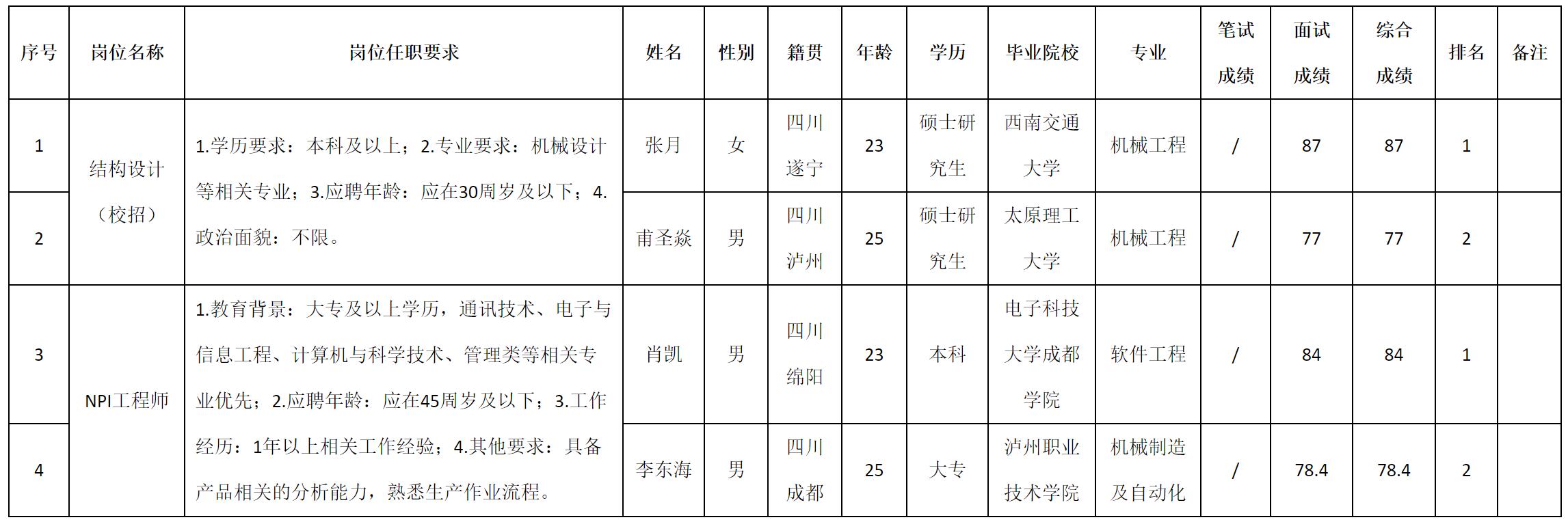 根據四川九州電子科技股份有限公司發(fā)布的招聘公告及招聘相關規(guī)定,現將測試成績予以公示。