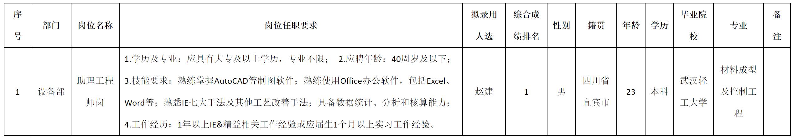 根據(jù)四川九華光子通信技術(shù)有限公司發(fā)布的招聘公告及招聘相關(guān)規(guī)定,經(jīng)測試、考察、體檢等程序,擬錄用趙建同志到四川九華光子通信技術(shù)有限公司工作,現(xiàn)予以公示,具體情況如下: