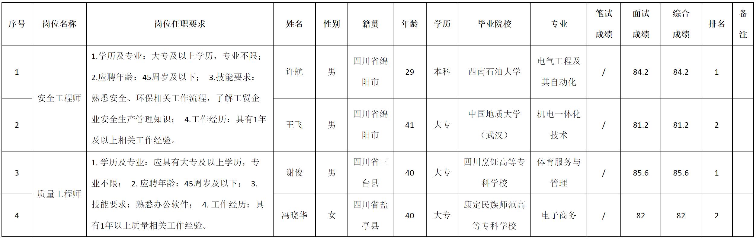 根據(jù)四川九州光電子技術有限公司發(fā)布的招聘公告及招聘相關規(guī)定,現(xiàn)將測試成績予以公示。