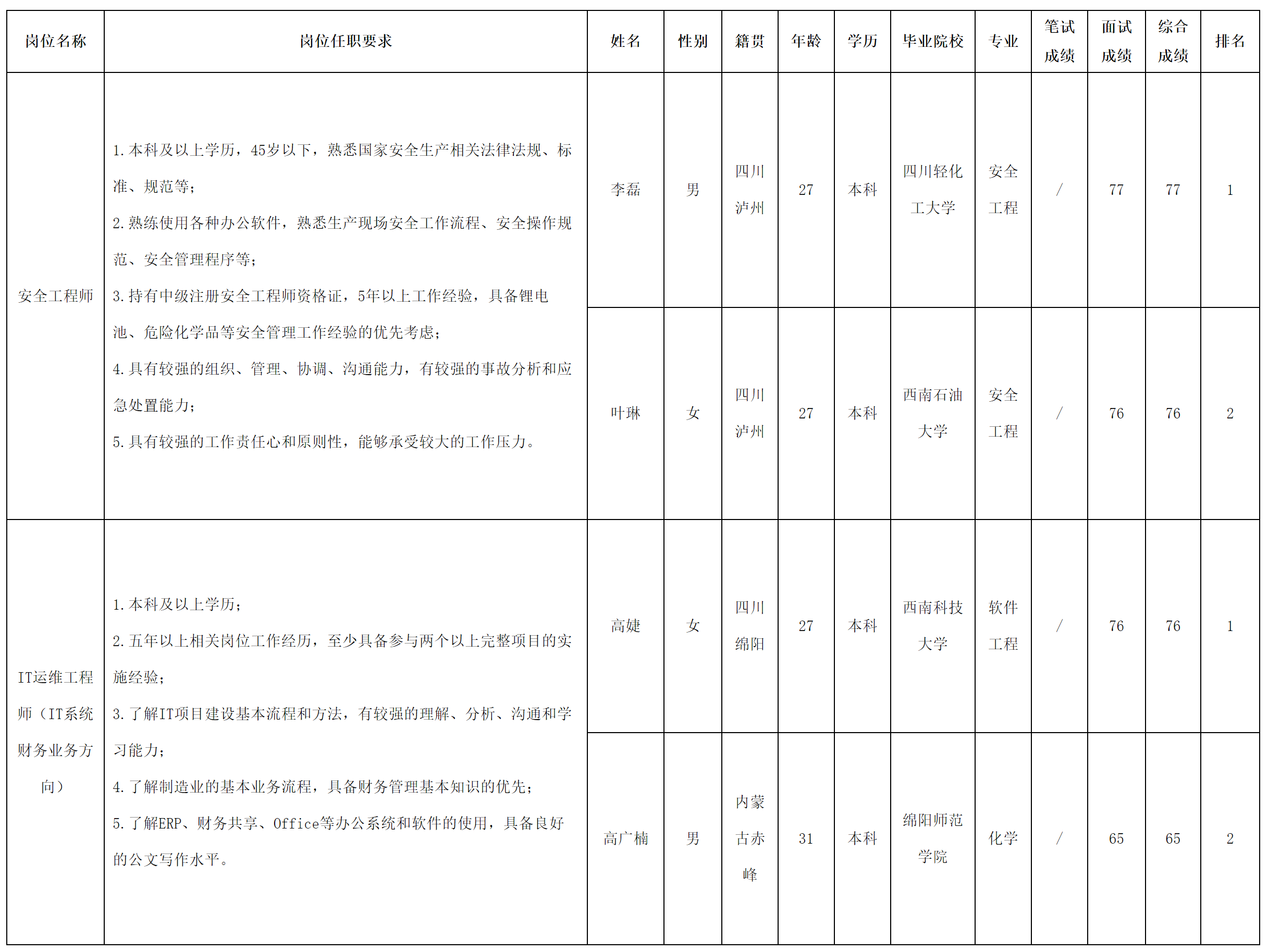根據(jù)長虹電源公司發(fā)布的招聘公告及招聘相關規(guī)定,現(xiàn)將測試成績予以公示。