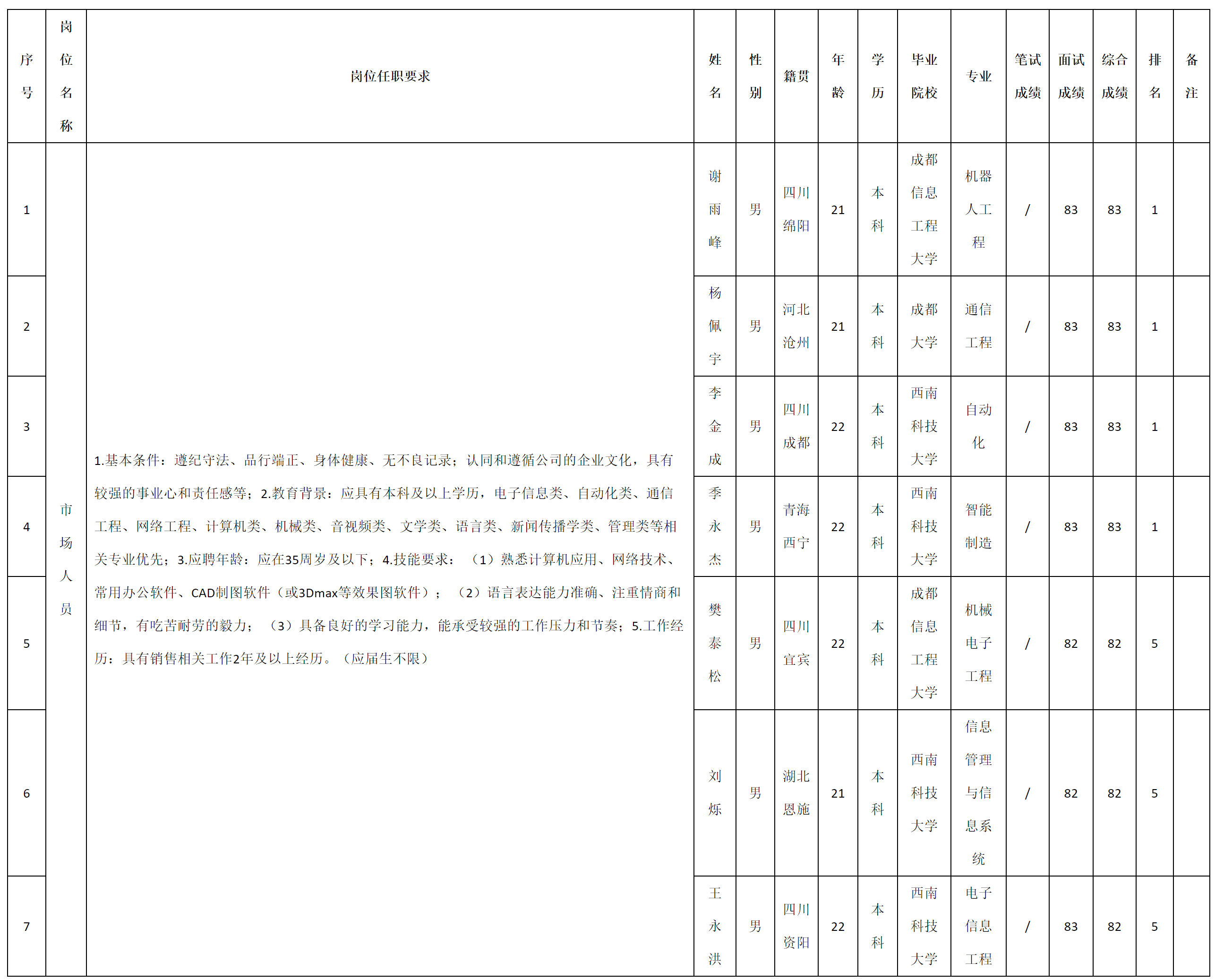 根據(jù)四川湖山電器股份有限公司發(fā)布的招聘公告及招聘相關(guān)規(guī)定,現(xiàn)將測(cè)試成績(jī)予以公示。