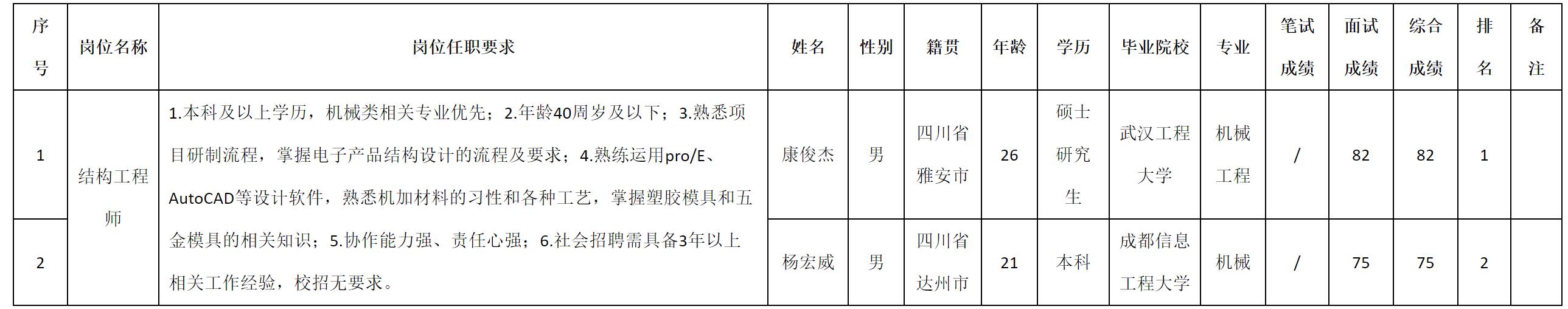 根據(jù)四川九洲光電科技股份有限公司發(fā)布的招聘公告及招聘相關(guān)規(guī)定,現(xiàn)將測(cè)試成績(jī)予以公示。