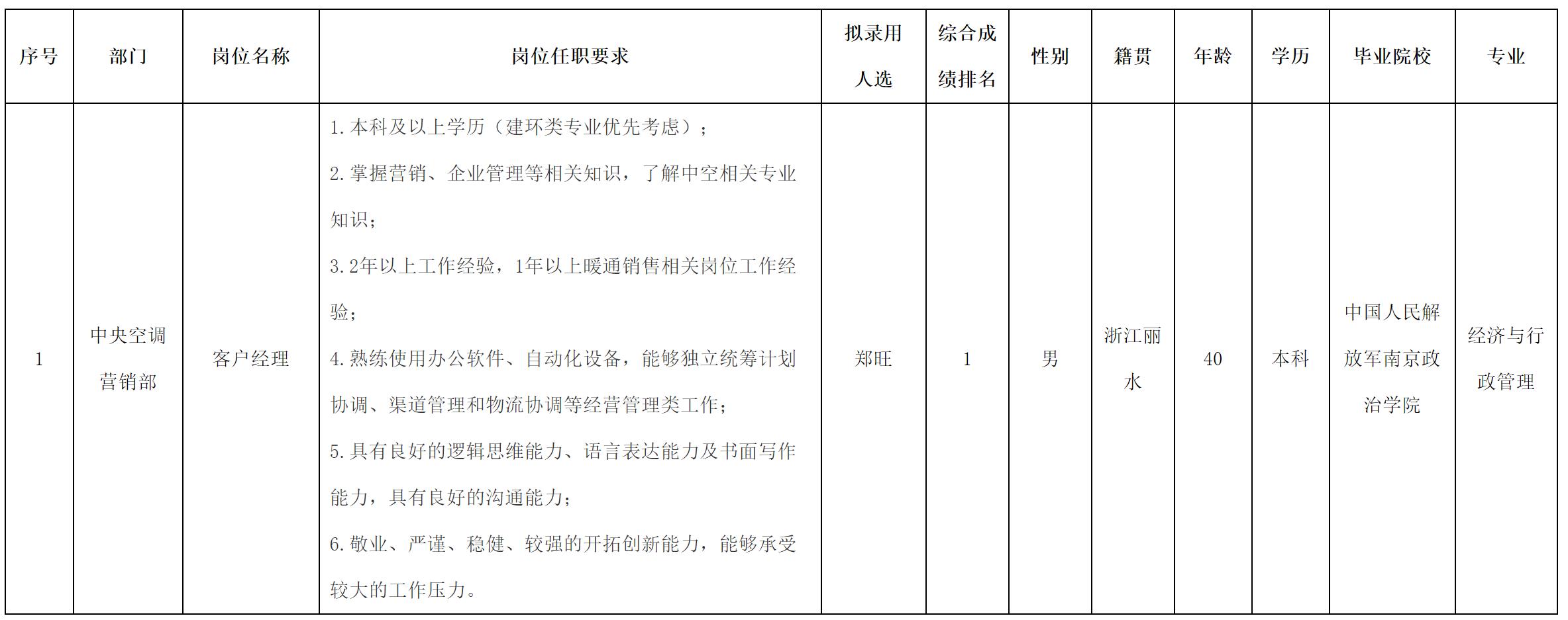 根據(jù)四川長(zhǎng)虹空調(diào)有限公司發(fā)布的招聘公告及招聘相關(guān)規(guī)定,經(jīng)面試,擬錄用鄭旺到長(zhǎng)虹空調(diào)工作,現(xiàn)予以公示,具體情況如下: