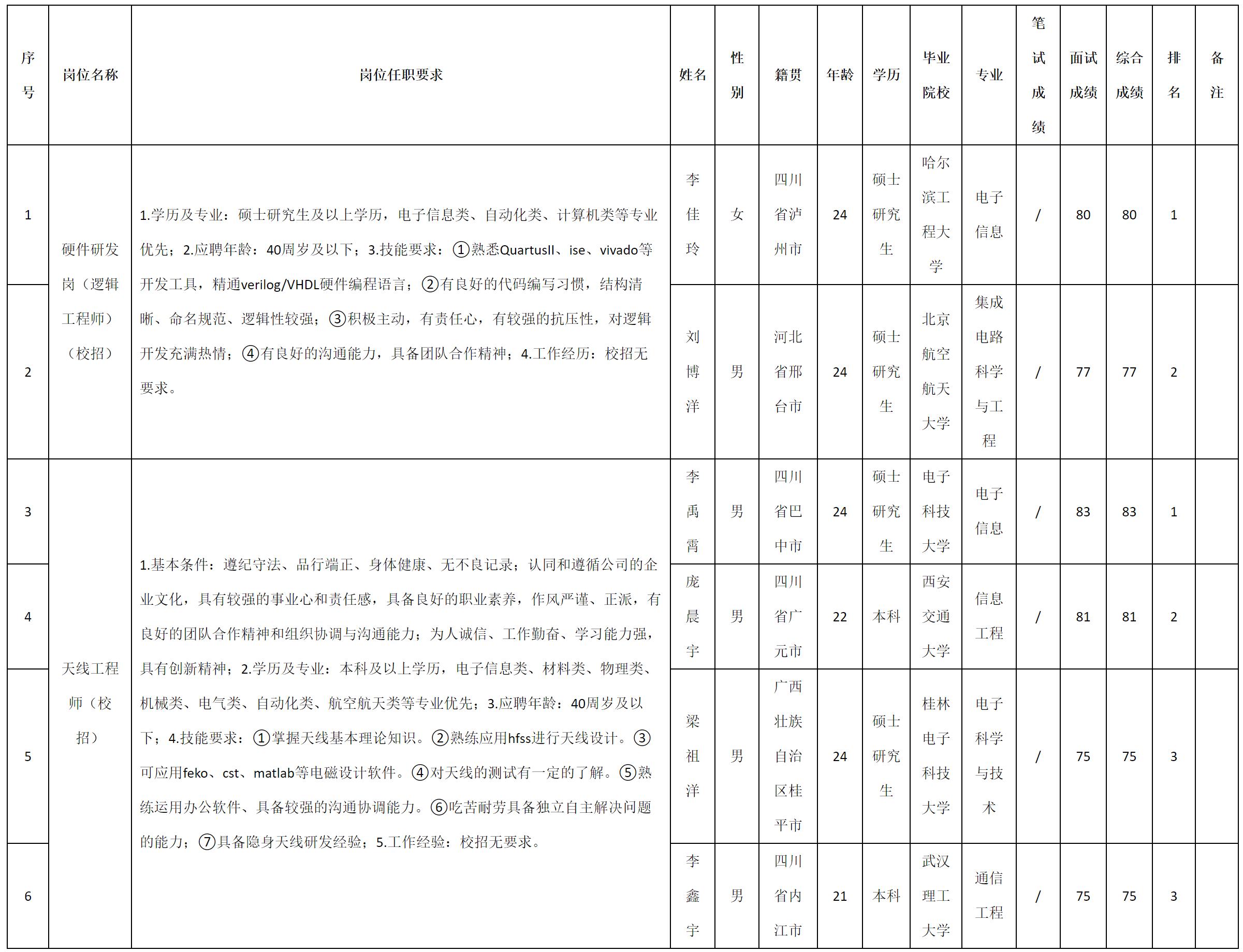 根據(jù)四川九洲電器集團(tuán)有限責(zé)任公司發(fā)布的招聘公告及招聘相關(guān)規(guī)定,現(xiàn)將測(cè)試成績(jī)予以公示。