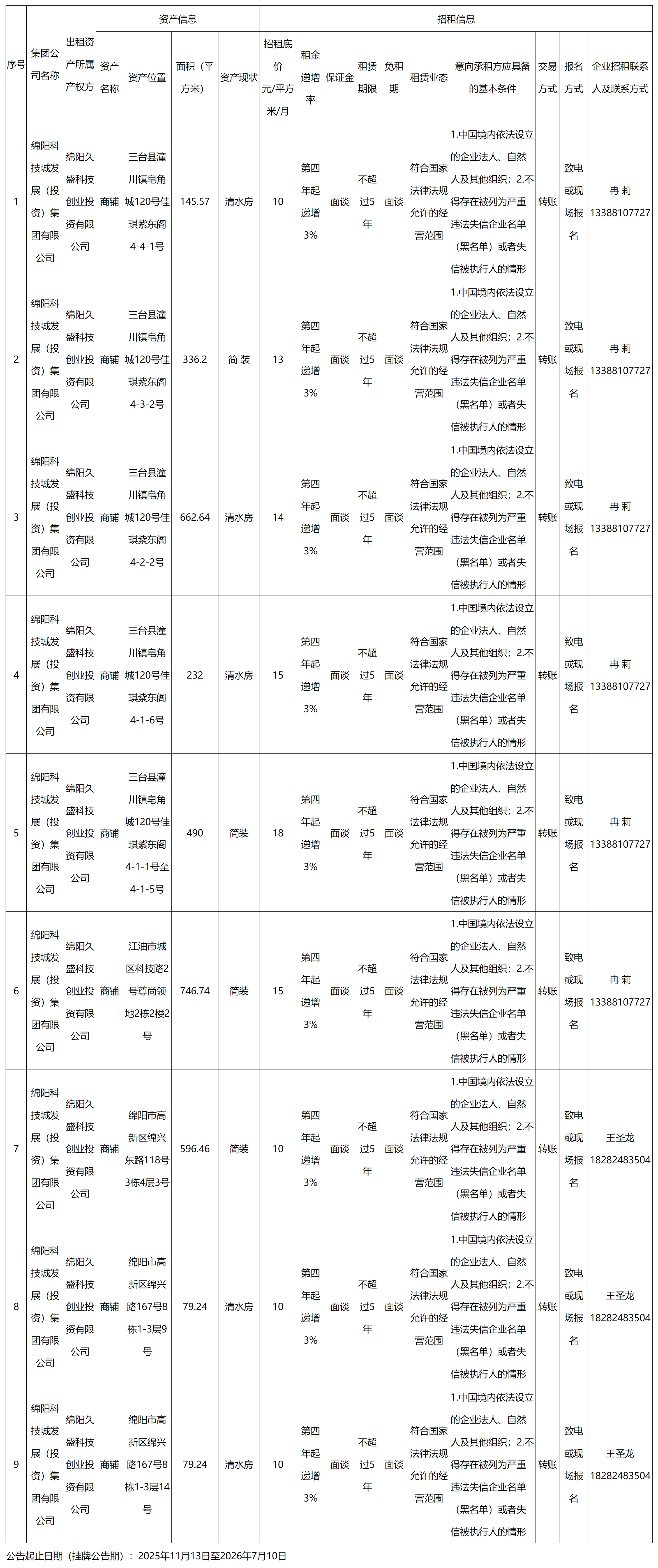 綿陽久盛科技創(chuàng)業(yè)投資有限公司資產(chǎn)出租公告