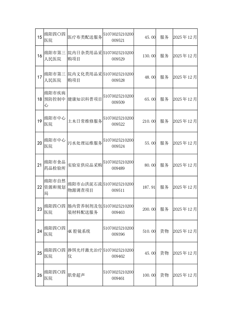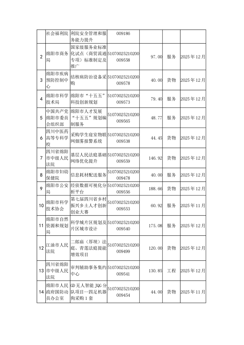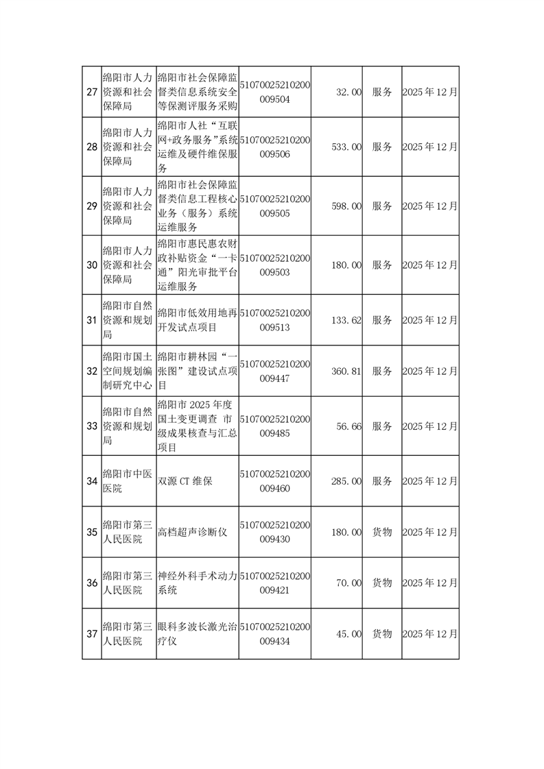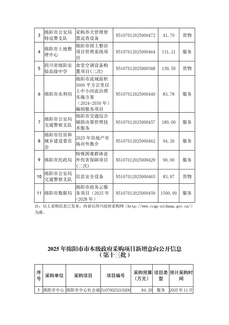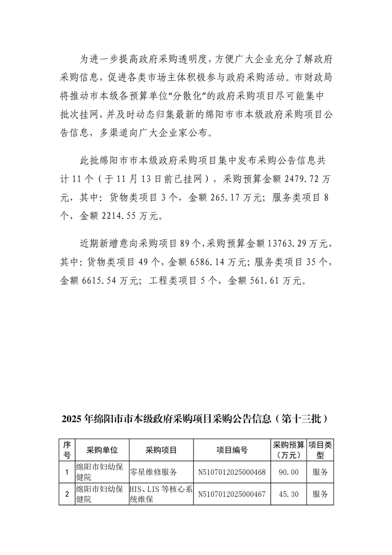 100個政府采購項目的“機會清單” 出爐?。?025年第十三批)綿陽市市本級政府采購項目信息動態(tài)(2025年第十三波)