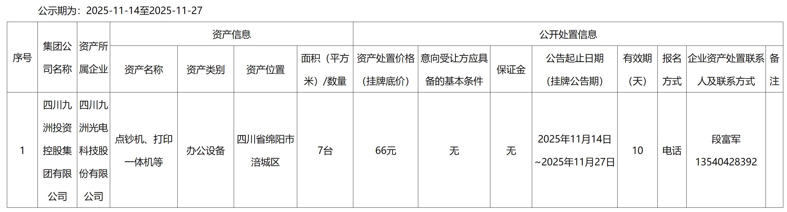 四川九洲光電科技股份有限公司點(diǎn)鈔機(jī)、打印一體機(jī)等辦公設(shè)備處置公告