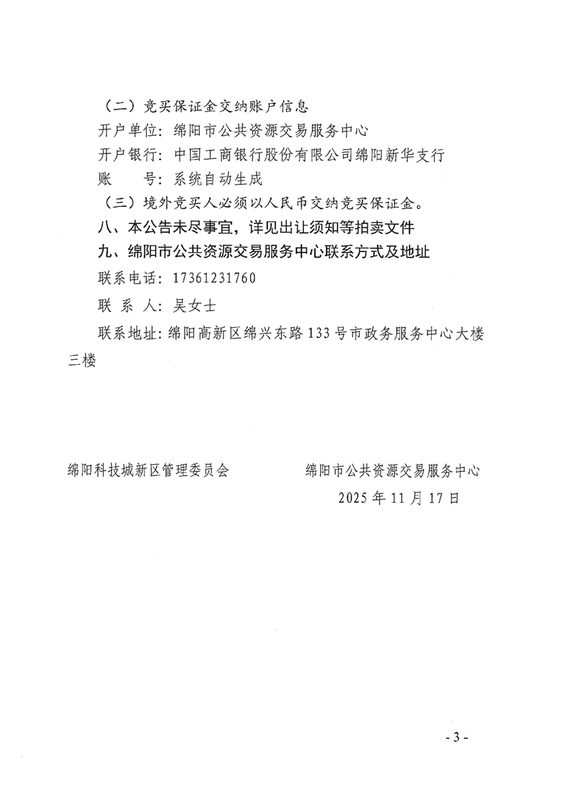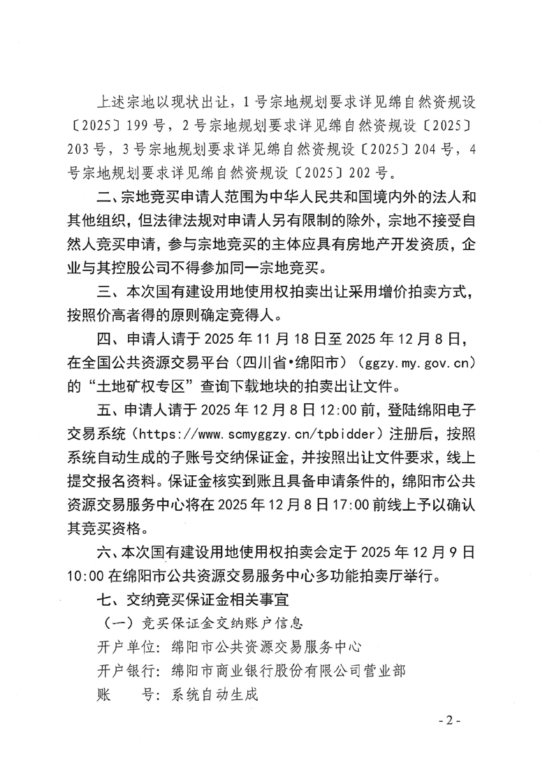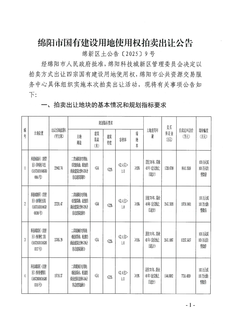 綿陽市國(guó)有建設(shè)用地使用權(quán)拍賣出讓公告(綿新區(qū)土公告〔2025〕9號(hào))