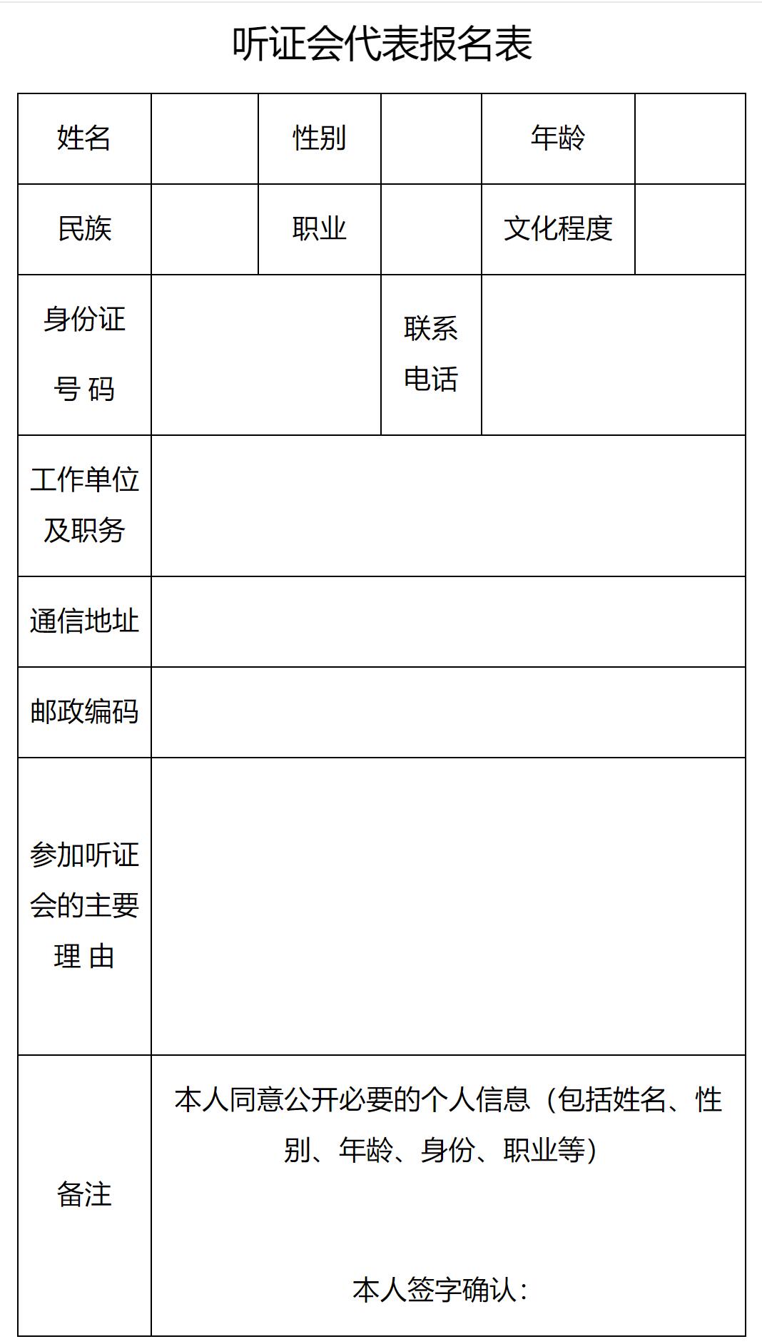 附件:聽證會(huì)聽證代表報(bào)名表