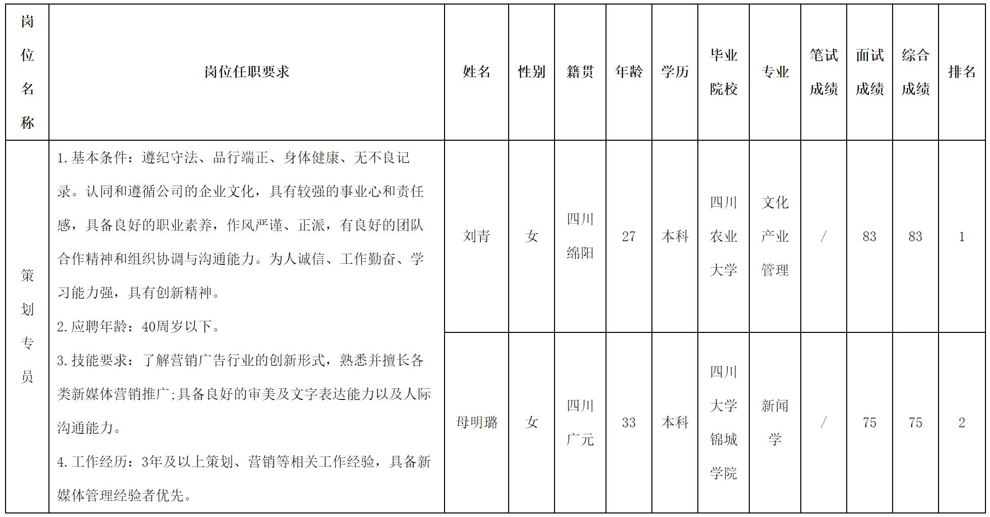 根據(jù)四川長虹置業(yè)有限公司發(fā)布的招聘公告及招聘相關(guān)規(guī)定,現(xiàn)將測試成績予以公示。
